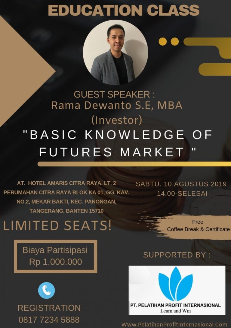 *Di update pada tanggal 15 Agustus 2019 Pada tanggal 10 Agustus 2019 PT. Pelatihan Profit Internasional mengadakan edukasi dengan tema “Basic Knowledge Of Futures Market” dengan menghadirkan pembicara sekaligus trader dan investor yaitu Rama Dewanto S.E, MBA dimana beliau memberikan…
