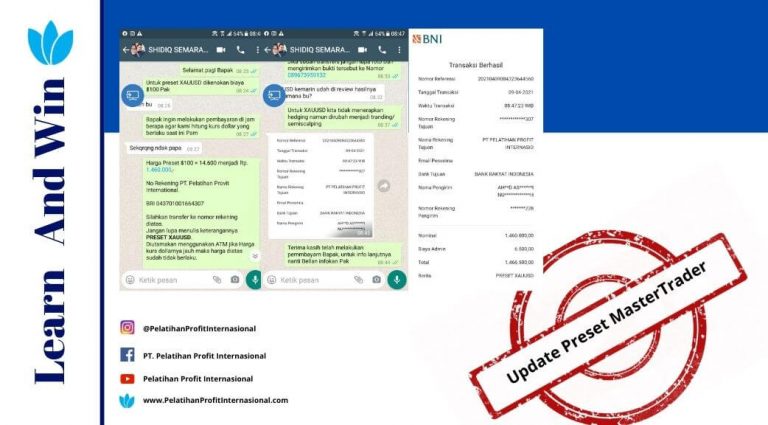 Terima Kasih Bapak Shidiq Dari Semarang Atas Pembayaran Preset Master Trader Sebesar $100 USD