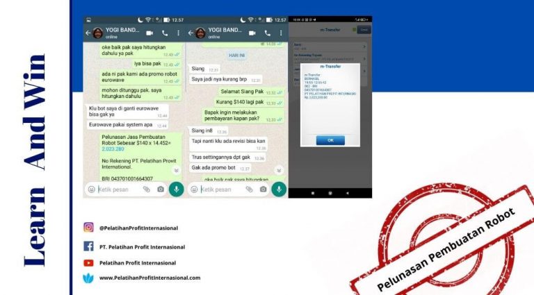 Terima Kasih Bapak Yogi Dari Bandung Atas Pelunasan Pembuatan Robot Sebesar $200 menjadi Rp.2.902.400,-. Semoga profit selalu Amin. Syarat dan ketentuan berlaku. Jika anda menyukai informasi dari artikel ini dan mau tahu informasi seputar edukasi trading lainnya? Kami siap memberikan…