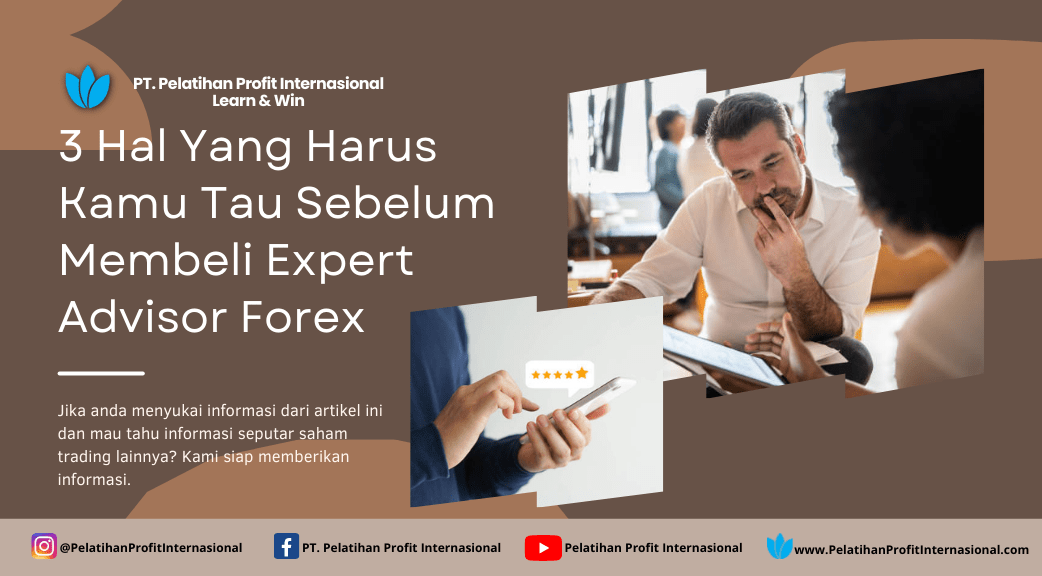 Expert Advisor Forex merupakan software khusus untuk aktivitas trading derivatif yang dapat mempengaruhi atau melakukan aktivitas trading forex tersebut. Expert Advisors adalah alat yang relatif baru di dunia trading. Tentu saja hal ini dapat berguna dalam aktivitas trading Anda, tetapi sebagai trader Anda perlu memahami dasar-dasar trading untuk memaksimalkan keuntungan Anda. PT. Pelatihan Profit Internasional memiliki program belajar trading yang dinamakan Program Private Training, pada program ini Anda akan di ajarkan trading maupun dari basic (dasar) atau tingkatan advance (Mahir), segera ikuti jika kamu tertarik dengan dunia trading.