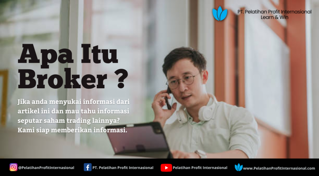 Apa itu Broker? Broker atau yang biasa disebut dengan pialang dalam bahasa Indonesia adalah orang perseorangan atau perusahaan yang bertindak sebagai perantara antara investor dengan bursa. Karena bursa hanya menerima pesanan dari individu atau perusahaan yang menjadi anggota bursa, pedagang dan investor individu membutuhkan jasa anggota bursa.
