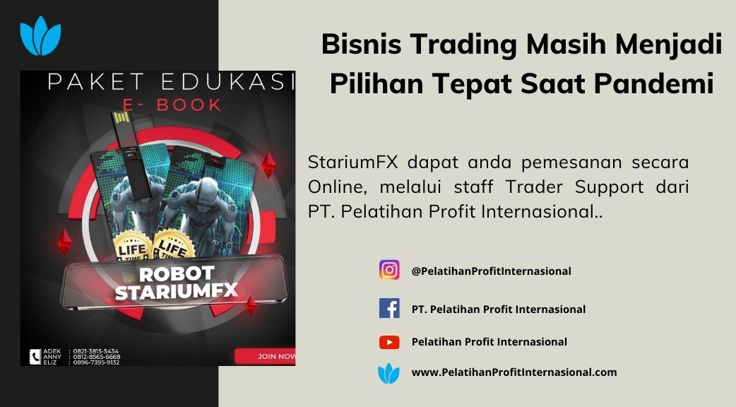 Nikmati investasi jangka panjang untuk menghasilkan profit hingga ribuan Dollar dengan menggunakan robot terbaik kami. StariumFX hanya memiliki karakter melaksanakan tugas sesuai dengan program di ada dalamnya. Robot trading tidak akan berkhianat atau keluar jalur dari sistem yang ditanamkan padanya. jadi suatu robot trading yang hebat pasti merupakan hasil terjemahan dari suatu sistem trading yang telah teruji dan handal. Semakin hebat pemrogram menerapkan ke dalam bahasa robot, maka akan diperoleh hasil yang semakin dekat dengan realita. Miliki segera Robot Trading StariumFX dari PT Pelatihan Profit Internasional sekarang juga, dapatkan promo menarik dari Robot Trading StariumFX. StariumFX dapat anda pemesanan secara Online, melalui staff Trader Support dari PT. Pelatihan Profit Internasional. Untuk informasi pemesanan, bisa menghubungi WhatsApp :