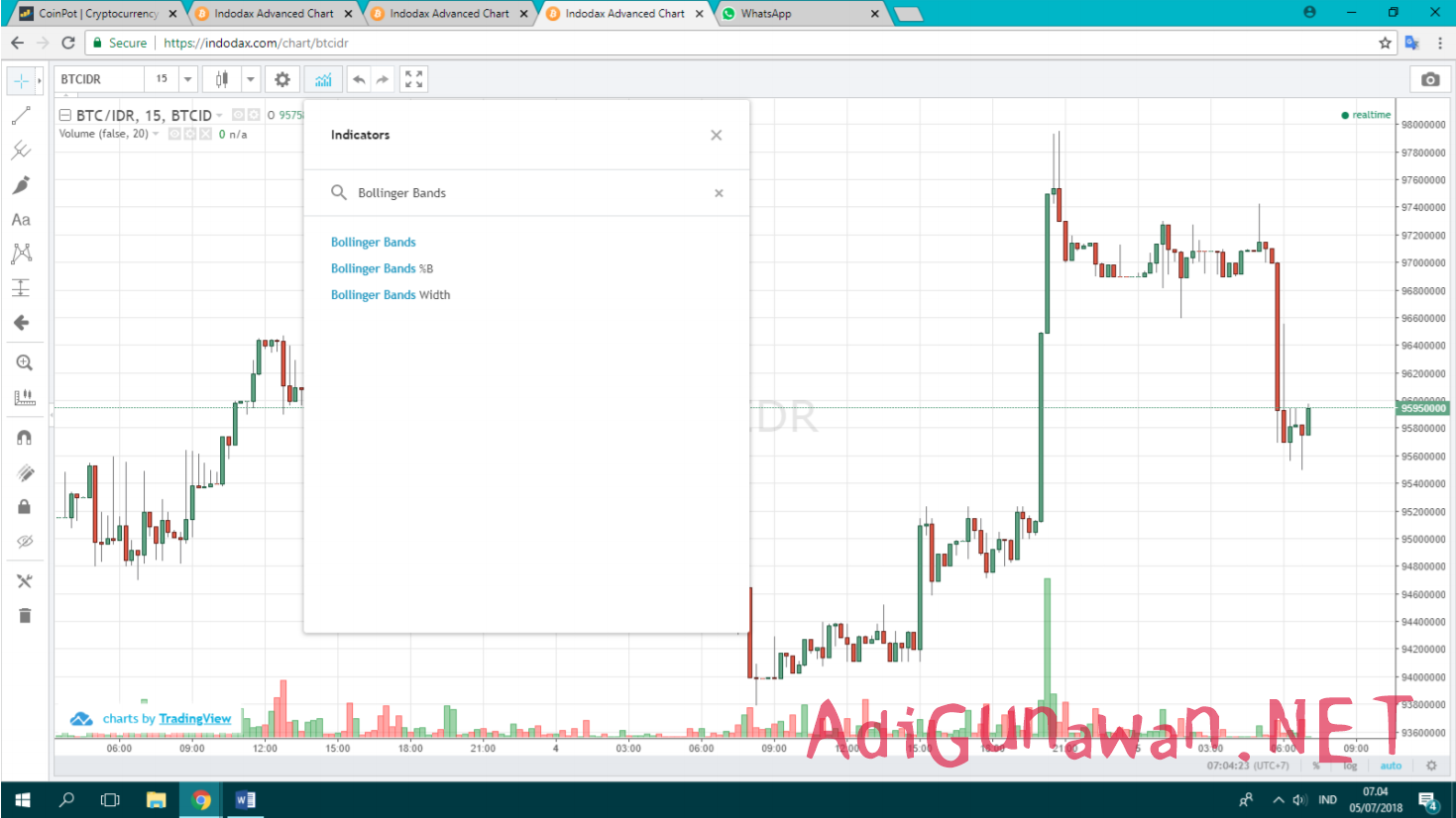 1. Pilih indikator Bollinger Bands dari daftar indikator