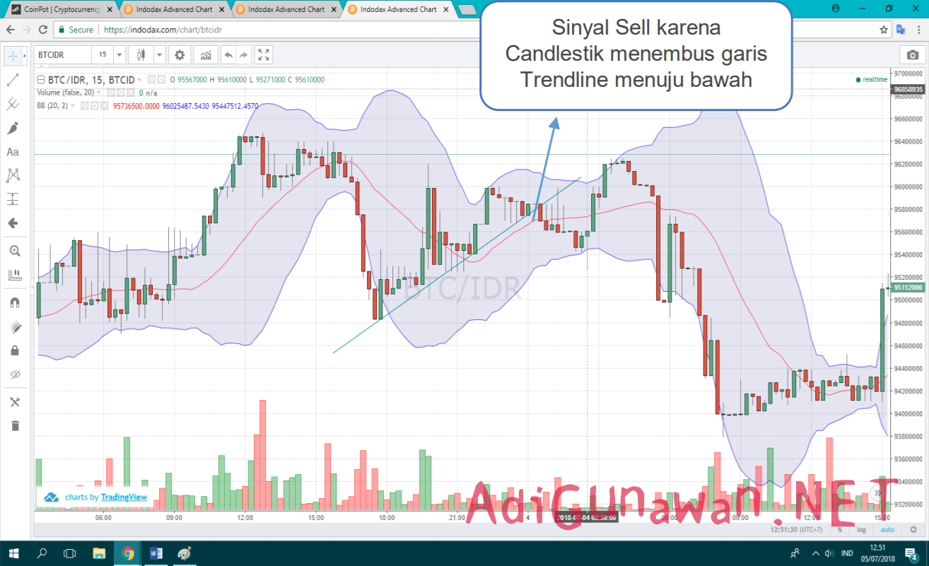 Tutorial Trading dengan Indikator Bollinger Bands dan Kombinasi Trendline