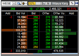 Kita tahu bahwa di dalam transaksi saham kita bisa melakukan penawaran harga dengan cara mengantri pada area pembelian pada kolom area harga BID dan ketika melakukan penjualan kita pun bisa menawar antri jual pada area kolom harga OFFER kolom harga yang terbentuk di area harga BID dan OFFER merupakan area harga yang terbentuk dalam transaksi. Antrian mereka pelaku pasar akan mempengaruhi psikologis harga saham dari antrian tersebut mampu memberikan stimulus psikologis pelaku pasar untuk membeli saham. Saya ambil contoh kasus saham WEGE