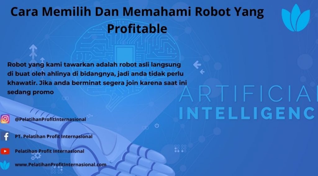 PT. Pelatihan Profit Internasional merupakan perusahaan legal dan resmi di Indonesia yang bergerak di bidang Edukasi Trading dengan memberikan layanan trading terlengkap dan terpercaya di Indonesia, serta menyediakan beberapa rangkaian Tools lengkap untuk memenuhi kebutuhan trading Anda. Robot yang kami tawarkan adalah robot asli langsung di buat oleh ahlinya di bidangnya, jadi anda tidak perlu khawatir. Jika anda berminat segera join karena saat ini sedang promo, harga promo khusus untuk 10 member pertama di bulan ini