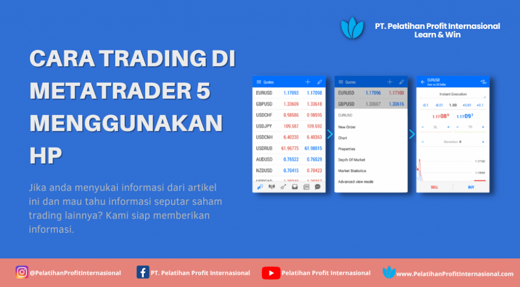 Yang pasti dalam trading di hp ataupun di android itu kita kita harus mempersiapkan dulu kita mau trading menggunakan akun demo atau akun real, nah ketika sudah ada pilihan langsung saja. karena strategi trading setiap orang berbeda dalam trading. Dan juga Platform MetaTrader 5 menyediakan semua yang Anda butuhkan untuk perdagangan yang sukses, termasuk informasi akun terkini bersama dengan sistem perdagangan yang kuat.