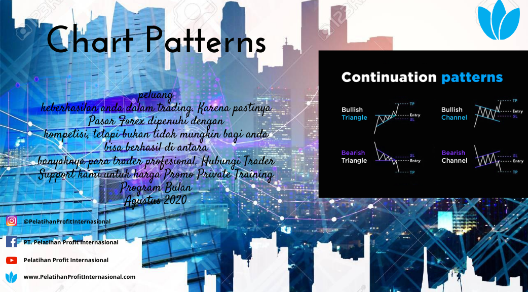 Chart Pattern terbagi menjadi dua kategori yaitu pembalikan arah (Reversal Pattern) dan juga pola berkelanjutan (Continuation Pattern). Sesuai dengan namanya reversal pattern mengindikasikan pembalikan arah trend yang sedang berlangsung. Sementara continuation pattern mengindikasikan koreksi normal pada sebuah trend atau pause sesaat, di mana trend tersebut diperkirakan akan terus berlanjut. Kunci utama dalam keberhasilan menggunakan chart pattern nantinya adalah bagaimana kita bisa secepat mungkin mengidentifikasi kategori formasi yang terbentuk apabila sudah terdapat informasi yang dibutuhkan secara jelas. Selain cara mengidentifikasi chart pattern dalam dua kategori tersebut, tentu juga akan dibahas bagaimana bentuk dari masing-masing chart pattern itu, bagaimana memeriksa dan mengujinya, serta menentukan parameter volume ideal yang seharusnya menyertai pola tersebut dan mengukur implikasinya. Masing-masing chart patterns mempunyai teknik tersendiri yang akan membantu trader dalam menentukan objektivitasnya (Price Objective) sehingga selain trader mendapatkan Entry Point dan Exit Point yang jelas, trader juga bisa menentukan rasio risk reward yang sepadan. Artikel di atas hanya sedikit memberikan pemahaman saja untuk anda seorang trader pemula atau trader yang baru ingin memulai trading. Bagi trader ataupun investor yang belum terlalu memahami konsep dasar Chart Pattern mungkin akan lebih baik jika mengikuti Class Privat Training. Sebuah skill baru bisa anda kuasai dan tingkatkan jika di praktekkan dan diulang-ulang untuk semakin mengasah kemampuan anda. Kami dari PT. Pelatihan Profit Internasional hadir dengan Trader Profesional yang akan membantu memberikan pengetahuan untuk anda para Trader pemula dan memberikan praktek pembelajaran kepada peserta melalui Program Private Training di tempat dan waktu yang anda inginkan. Jadi anda akan kami ajarkan dari tidak bisa sampai bisa trading dan anda bisa request materi yang ingin dikuasai. Sebagai seorang trader, anda pasti selalu berusaha mencari strategi apa yang cocok untuk digunakan demi meningkatkan peluang keberhasilan anda dalam trading. Karena pastinya Pasar Forex dipenuhi dengan kompetisi, tetapi bukan tidak mungkin bagi anda bisa berhasil di antara banyaknya para trader profesional. Hubungi Trader Support kami untuk harga Promo Private TrainingProgram Bulan Agustus 2020 dari PT. Pelatihan Profit Internasional .