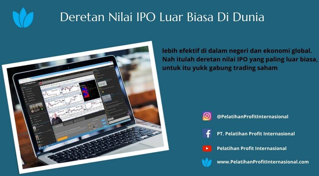 Siapa yang tidak mengenal Grup Alibaba, didirikan oleh Jack MA pada 4 April 1999. Alibaba dimulai dengan tujuan: melalui Internet, meningkatkan pekerjaan melalui pelatihan usaha kecil sehingga menjadi hebat, tumbuh dan dalam kompetisi lebih efektif di dalam negeri dan ekonomi global. Nah itulah deretan nilai IPO yang paling luar biasa, untuk itu yukk gabung trading saham.
