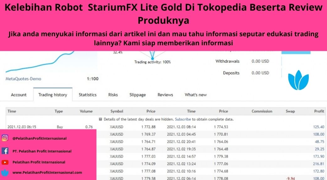 Miliki segera Robot Trading StariumFX dari PT Pelatihan Profit Internasional sekarang juga. StariumFX dapat anda pesan melalui Marketplace Tokopedia, Shoppee, Bukalapak dan Blibli .
