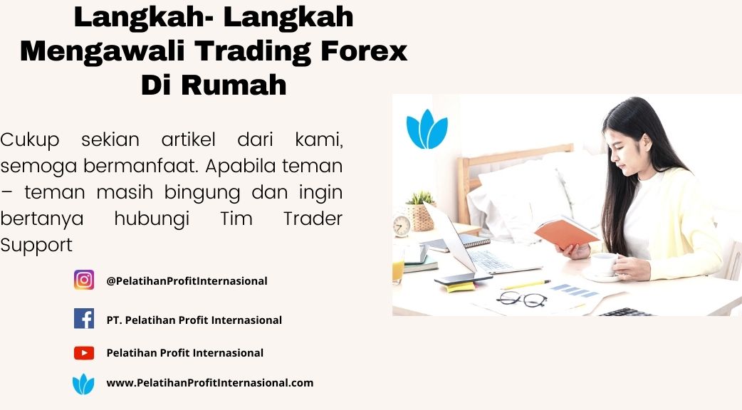 Dikala berdagang di rumah, Kamu wajib melatih diri secara tidak berubah- ubah. Kamu wajib mengalokasikan waktu yang lumayan buat membuat rencana perdagangan serta mengevaluasi hasil perdagangan. Sangat dianjurkan buat menekuni demo platform perdagangan sepanjang sebagian minggu saat sebelum terjun ke akun nyata. Jangan sempat merambah pasar saat sebelum mempersiapkan rencana trading yang jelas, serta pantau secara tertib pertumbuhan data yang tersebar di pasar forex. Sehabis mengenali langkah- langkah di atas, saatnya Kamu mulai membuka akun serta mencari profit sebanyak- banyaknya. Selamat berupaya serta mudah- mudahan sukses, trader.