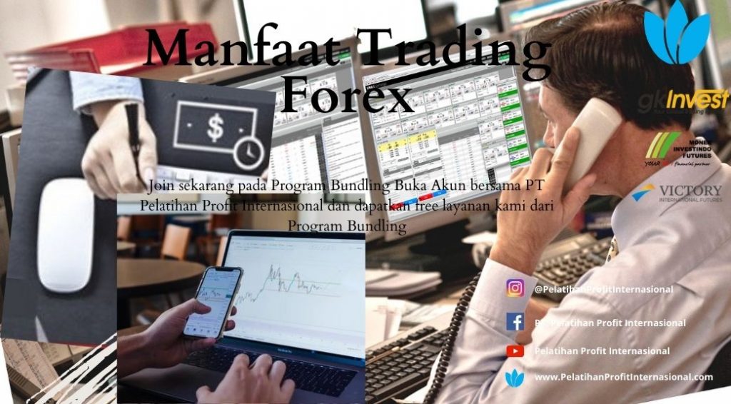 Investasi forex trading merupakan salah satu cara investasi yang menguntungkan bagi trader karena volatilitas harga yang tinggi serta volume trading yang besar menjadikan peluang bagi trader untuk mendapatkan keuntungan (Profit) maksimal. Keuntungan trader lainnya yaitu memiliki kebebasan waktu, oleh karena itu harus bersikap cermat dalam berbisnis forex. Pasar forex merupakan perekonomian dunia sehingga bisa dikatakan tidak mungkin bangkrut. Pasar forex buka selama 24 jam setiap harinya, sehingga bisa dimanfaatkan sebagai bisnis utama maupun bisnis sampingan untuk menambah penghasilan. Harga pasar tidak bisa dipermainkan karena harga tersebut yang terjadi benar-benar menggambarkan permintaan dan penawaran mata uang dari seluruh dunia. Dalam melakukan trading, anda bebas memilih broker manapun dan tentunya akan lebih memilih broker yang tidak mengenakan komisi apapun terhadap transaksi yang dilakukan. Belakangan ini banyak orang yang mengandalkan aktivitas trading guna mendapatkan pemasukan tambahan apalagi saat kondisi ekonomi dunia dilanda oleh covid-19. Tidak sedikit orang berhasil memperoleh kekayaan dalam sekejap melalui aktivitas ini, namun anda juga perlu paham ada resiko tinggi dibalik trading. Karena trading mengharuskan anda berperan aktif dalam mencapai target profit pada suatu periode, yang artinya untung dan rugi dari dana yang anda kembangkan bergantung pada usaha anda sebagai seorang trader.