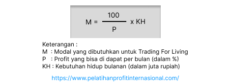 Oleh karena itu, Modal Trading For Living = 100% / 5% x 5 juta = 100 juta