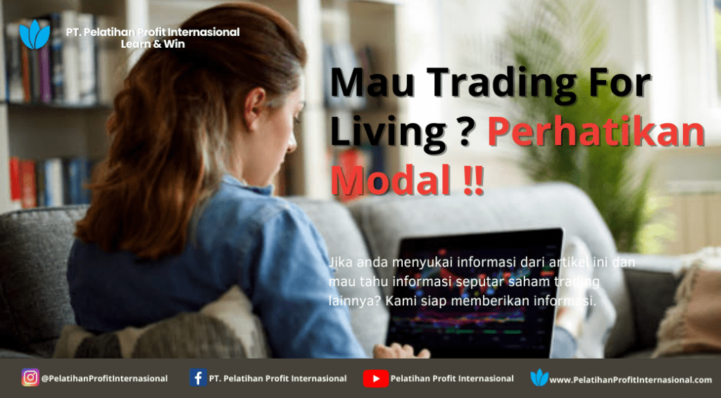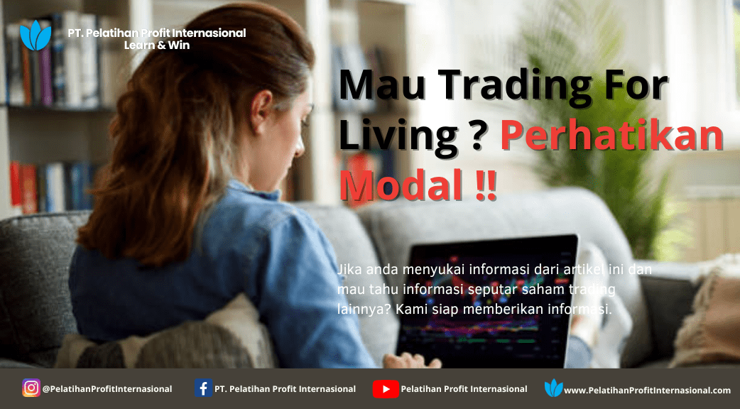Modal yang dibutuhkan untuk Trading For Living bervariasi dari orang ke orang. Tentunya harus cukup. Jika Anda kekurangan modal trading, Anda mungkin tidak dapat mengandalkan hasil trading untuk kebutuhan sehari-hari Anda. Besarnya modal tergantung pada beberapa faktor.