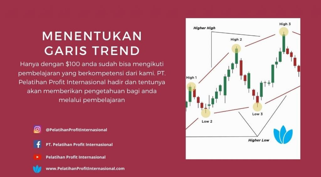 Kesimpulannya adalah, untuk mengkonfirmasi sebuah garis tren dibutuhkan dua titik puncak ataupun lembah dalam membuat sebuah garis tren yang valid dan sebuah titik ke tiga yang mengkonfirmasi garis tren. Jika anda bertemu dengan kondisi garis tren yang terputus atau tidak dalam kondisi satu garis panjang, maka anda bisa menarik kesimpulan akan ada kemungkinan terjadi pergantian tren disana. Semakin sering garis tren terputus, maka kemungkinan pergantian tren akan semakin besar. Dari apa yang sudah di jelaskan, PT. Pelatihan Profit Internasional dapat membantu anda dalam memberikan Pelatihan Private untuk anda yang ingin belajar dengan nyaman diluar kesibukan anda. Join sekarang untuk mengikuti pelatihan kami pada Program Private Training PT. Pelatihan Profit Internasional, hanya dengan $100 anda sudah bisa mengikuti pembelajaran yang berkompetensi dari kami. PT. Pelatihan Profit Internasional hadir dan tentunya akan memberikan pengetahuan bagi anda melalui pembelajaran di tempat dan waktu yang anda inginkan untuk kesuksesan anda.