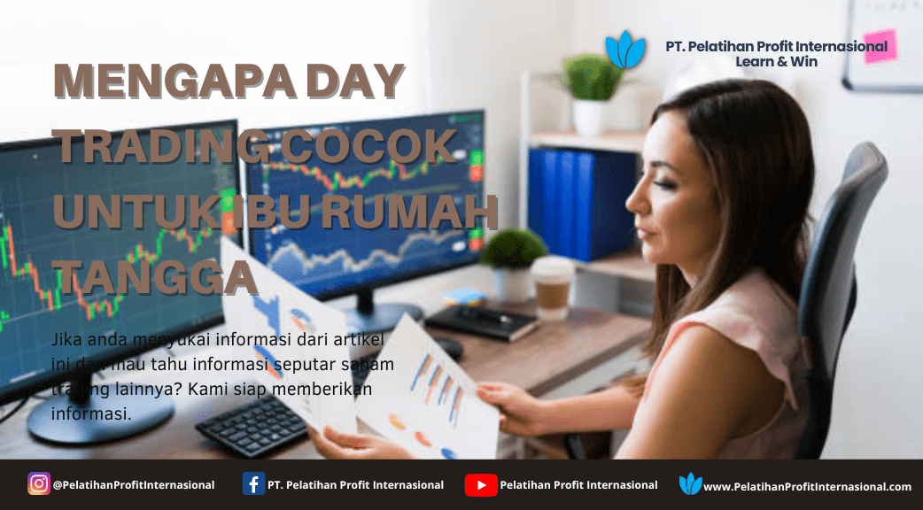Bagi ibu rumah tangga yang tidak memiliki penghasilan tetap bulanan dari kantor, trading bisa menjadi pilihan untuk memperoleh penghasilan sampingan tanpa modal yang tidak terlalu besar dan dengan waktu yang fleksibel. Apalagi pasar forex terbuka 24 jam dalam 5 hari dengan pilihan 4 sesi perdagangan utama, yaitu New York, London, Sydney, dan Tokyo. Trader tinggal menyesuaikan dengan waktu luangnya. melakukan pola trading secara harian pada dasarnya bertujuan untuk mendapatkan keuntungan. Namun, disarankan untuk dibandingkan dengan keuntungan yang dicapai secara konsisten. Sebab dalam perdagangan, konsistensi jadi jauh lebih penting daripada besaran keuntungan itu sendiri. Konsistensi dapat menjadikan profesi sebagai day trader menguntungkan untuk jangka waktu yang lama. Ingat, profit sedikit demi sedikit akan menjadi bukit. Bagi Sahabat Trading yang ingin mengetagui lebih lanjut informasi ini dan mau trading dari modal kecil hubungi Trader Support kami dari PT pelatihan Profit internasional, nanti anda akan di ajarkan memulai trading sederhana di nomor 081286630461.