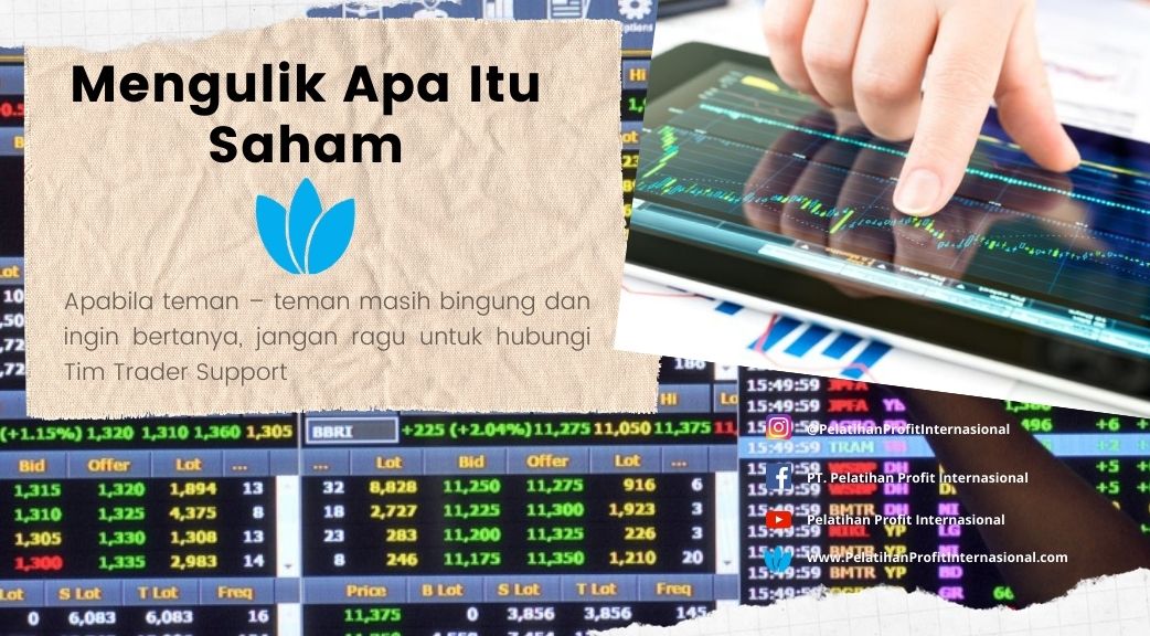 Saham merupakan bukti kepemilikan akan suatu usaha bisa berupa surat berharga atas kepemilikan perusahaan tersebut. Jadi ketika Anda membeli saham berarti anda saat ini memiliki saham tersebut dan itu berarti Anda sebagai pemilik dari sebagian perusahaan tersebut.