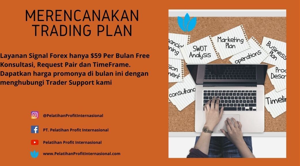 Menentukan strategi Entry, Risk/Reward Ratio, Position Size, Take Profit dan Jurnal Evaluasi, juga merupakan hal penting yang harus diperhatikan dalam membuat sebuah Trading Plan. Dengan trading plan, jalan anda akan lebih lurus dan tidak tergoda dengan trend yang tidak jelas. Ini merupakan hal yang sangat lazim jika salah satu diantara anda mencontoh trader lain atau mengikuti cara trading orang lain yang dianggap lebih senior dari pada anda. Jangan hanya karena seseorang memiliki metode trading yang bisa mereka jalankan dengan baik dan sukses, belum tentu metode tersebut cocok pula untuk anda. Dengan kata lain, belum tentu anda pun bisa menjalankan metode trading tersebut dengan baik dan sukses pula. Namun dengan trading plan yang baik setiap keputusan yang keluar telah diperhitungkan dengan matang, sehingga anda akan terhindar dari membuat keputusan yang tergesah-gesah dalam situasi yang sulit. Karena semakin anda memaksakan diri untuk memasuki pasar menggunakan analisa dengan begitu banyak variabel teknikal maupun data fundamental yang ada, semakin hasil account trading anda tidak konsisten. Hal ini merupakan rintangan psikologis yang harus diatasi oleh seorang trader karena kenyataan ini berhubungan langsung dengan konsep bahwa kesabaran dalam trading akan mendapatkan imbalan atau reward dari pasar. Memiliki metode trading yang bisa dijalankan dengan baik dan berhasil sukses, belum tentu metode serupa dapat sama persis memberikan hasil yang sama untuk anda. Emosi anda kemungkinan akan menguasai diri anda ketika uang anda berada dalam bahaya. Sebagian besar di antaranya mungkin adalah seorang trader pemula. Tidak ada salahnya jika anda menggunakan penyedia Layanan Signal sebagai trading planning anda. Karena belum tentu anda dapat dengan mudah mempelajari bagaimana pasar bekerja terhadap berita dan ini akan baik untuk meningkatkan profit trading anda. Kami PT. Pelatihan Profit Internasional siap membantu anda dalam memberikan Layanan Signal Forex dengan hasil konsisten. Bukan itu saja, PT. Pelatihan Profit Internasional juga memiliki Trader Profesional yang tentunya akan memberikan profit bagi anda dengan tingkat keakurasian mencapai 70%. Bergabunglah sekarang bersama kami di PT. Pelatihan Profit Internasional untuk berlangganan Layanan Signal Forex hanya $59 Per Bulan Free Konsultasi, Request Pair dan TimeFrame. Dapatkan harga promonya di bulan ini dengan menghubungi Trader Support kami di WhatsApp :