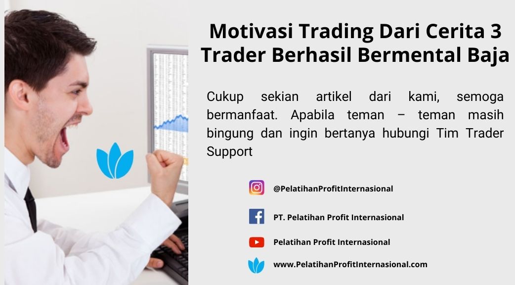 Nah, seperti itu sebagian contoh cerita trader berhasil yang populer dengan mental bajanya. Pastinya tiap trader tentu mempunyai hambatannya tiap-tiap dalam ekspedisi mencapai kesuksesan trading. Perihal terutama merupakan berkomitmen buat tidak menyerah. Ayo terus semangat!