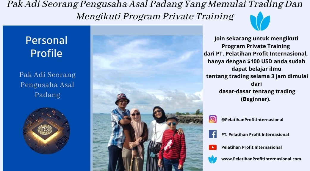 Pada dasarnya trading itu mudah untuk dipahami jika anda mampu mencerna dan merekamnya dalam otak apa yang sudah dipelajari. Namun jika anda masih belum dapat memahami tentang trading, anda bisa mengikuti Program Privat Training dari PT. Pelatihan Profit Internasional seperti yang dilakukan oleh Pak Adi. Jangan malu ataupun ragu jika anda ingin mengasah atau belajar tentang trading. Karena trading merupakan suatu bisnis yang sangat luar biasa menguntungkan jika anda sudah paham secara benar tentang analisa berdasarkan teknik maupun fundamental.
