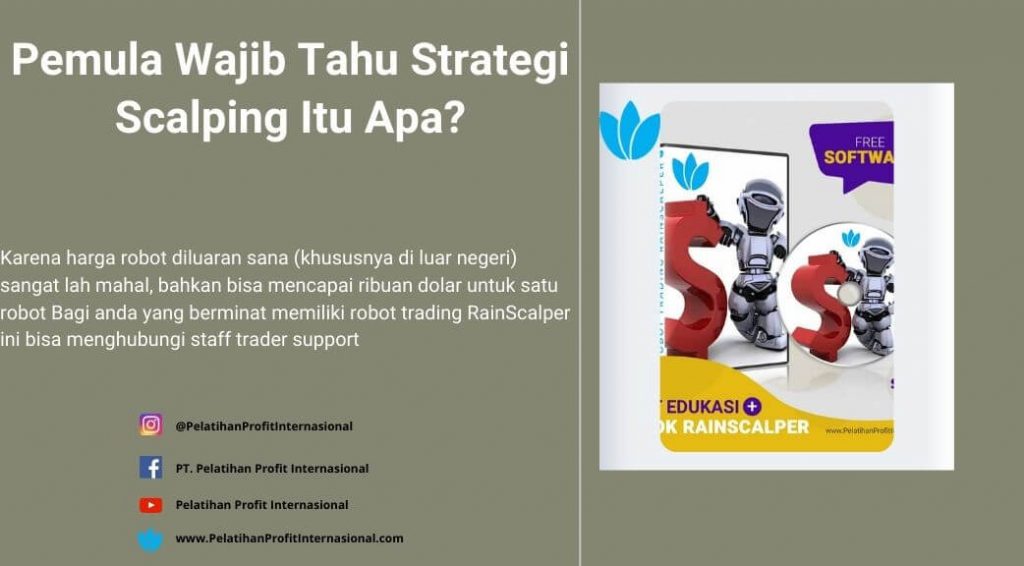Strategi scalping merupakan metode dimana seorang trader mengambil keuntungan kecil secara berkala dengan cara membuka dan menutup posisi beberapa kali dalm sehari. Strategi ini dipakai oleh robot rainscalper. Teknik scalping secdiri adalah salah satu strategi terbaik dalam trading. dalam dunia trading scalping ini sudah sering anda sebut-sebut sebagai strategi terbaik untuk mendapatkan keuntungan dalam waktu singkat. Scalping sendiri strategi trading pada timefrine yang rendah dengan tujuan untuk mendapatkan keuntungan yang sangat besar. Strategi yang dipakai dalam forex ini sangatlah populer di Indonesia dengan menghasilkan frekuensi trading yang tinggi antara puluhan hingga ratusan dalam sehari. Meskipun begitu strategi ini rata-rata meraih keuntungan dengan per posisi trading terhitung sekitar 5-15 pips.