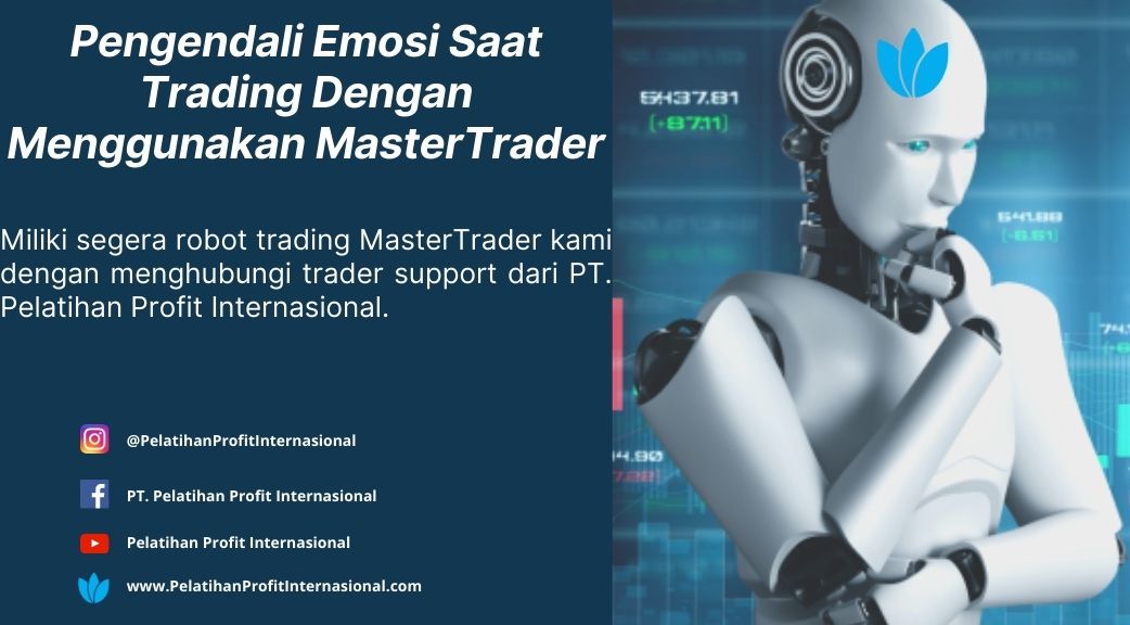 Dalam psikologi trading, emosi biasanya muncul jika trader melakukan kesalahan atau kehilangan kesempatan saat melakukan entry atau exit sehingga mengalami kerugian yang cukup besar. Psikologi ini dapat membuat trader merasa menyesal yang terus-menerus dan hanya akan menghancurkan trading secara perlahan. Jika tidak cepat diatasi, emosi ini bisa berkembang menjadi rasa takut yang justru dapat membuat trader berhenti trading secara tiba-tiba. Jika trader beralih dalam trading otomatis, robot trading hanya dapat bekerja sesuai dengan instruksi yang telah disetting ke dalam program untuk bekerja berdasarkan perintah yang diberikan oleh trader tanpa mempengaruhi emosional. Larena robot trading diciptakan untuk dapat membantu trader dalam mendapatkan profit secara konsisten dengan sangat baik. Robot trading dapat dimasukan ke berbagai macam indikator dan strategi terbaik yang sesuai dengan kebutuhan trader. Sama halnya dengan robot trading Master Trader dari PT. Pelatihan Profit Internasional, yang dapat bekerja menggunakan multistrategi dan multi time frame yang tentunya dapat membantu trader dalam melakukan aktivitas trading secara otomatis. Master trader dikembangkan untuk trading di lebih dari 25 instrumen seperti Forex, Commodity, Index, Stock, Crypto dan Option. Namun untuk settingan default master trader yang digunakan untuk EURUSD dan GBPUSD di time frame M15. Ini merupakan sebuah solusi yang tepat untuk anda sebagai seorang trader yang menginginkan profit secara konsisten. Mulai dari tingkat kematangan dalam menganalisa pergerakan trend pasar, otomatisasi pengambilan order, hingga membuat anda mendapatkan profit secara otomatis.