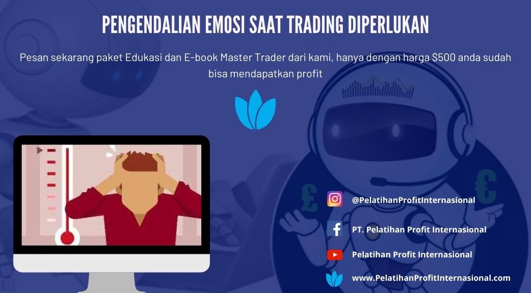 Trading merupakan bisnis yang saat ini banyak sekali peminatnya. Namun trading bukanlah sesuatu yang mudah untuk dijalankan apabila calon trader tidak memahami dasar-dasar tentang trading. Apabila anda ingin terjun langsung ke dunia trading, sebaiknya anda mengikuti kelas edukasi yangberfokuskan pada analisa teknikal maupun fundamental. Seringkali trader yang melakukan trading dikendalikan oleh emosi yang selalu terburu-buru saat melakukan open posisi maupun cut posisi. Selalu pahami dengan benar langkah-langkah trading apabila trader ingin melakukan open posisi. Jangan sampai anda membiarkan trading anda merugi berlama-lama hingga tak bisa dikendalikan lagi. Ini dapat membuat anda mengalami kerugian yang begitu dalam sehingga anda harus rela kehilangan dana anda. Jadi pengendalian emosi sangatlah diperlukan dalam trading agar trader dapat menghasilkan profit yang konsisten. Mungkin bagi trader yang sangat sulit mengendalikan emosi dalam trading, trader bisa saja menggunakan robot trading sebagai cara paling efektif dalam menghasilkan profit tanpa harus terpengaruh oleh emosi.