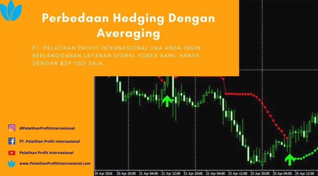 Contoh Hedging yaitu apabila seorang trader open Sell AUDUSD sebanyak 1 lot dan harga bergerak tak sesuai harapan (berbalik arah) dan posisi masih floating loss -30 point, trader tersebut dapat melakukan open Buy AUDUSD 1 lot pada mata uang yang sama sehingga kerugian tersebut dilock hanya -30 point. Meskipun harga bergerak ke arah manapun, floating loss tetap -30 point. Jika harga benar terus naik, maka anda akan menutup posisi Sell dengan jumlah loss yang kecil dan membiarkan posisi Buy terbuka hingga mencapai target profit yang diinginkan. Sebaliknya, jika harga AUDUSD ternyata berubah arah lagi dan semakin turun, maka anda akan menutup posisi Buy dan membiarkan posisi Sell tetap terbuka. Sedangkan untuk contoh Averaging ialah apabila seorang trader open Sell AUDUSD 1 lot pada harga 0.76160, tetapi harga bergerak naik ke level 0.76260 sehingga mengalami floating loss -100 point. Trader dapat melakukan averaging dengan cara membuka posisi Sell AUDUSD 1 lot pada harga 0.76260 saat itu juga. Hal ini berarti ada 2 open posisi. Posisi pertama floating loss -100 point dan posisi kedua 0 point (asumsi tanpa menghitung spread). Jadi yang perlu anda ketahui, sebagai seorang trader anda harus mengerti strategi apa yang baik anda gunakan dalam trading dan bagaimana anda bisa melakukan open posisi yang baik dan benar. Namun tidak ada salahnya jika anda menggunakan penyedia Layanan Signal sebagai rekomendasi atau panduan bagaimana pasar bekerja terhadap berita dan untuk meningkatkan profit trading anda. Kunjungi website resmi kami PT. Pelatihan Profit Internasional jika anda ingin berlangganan Layanan Signal Forex kami. Hanya dengan $59 USD saja, anda sudah dapat menghasilkan profit yang sesuai dengan target anda juga dengan tingkat akurasi yang mencapai 70%.