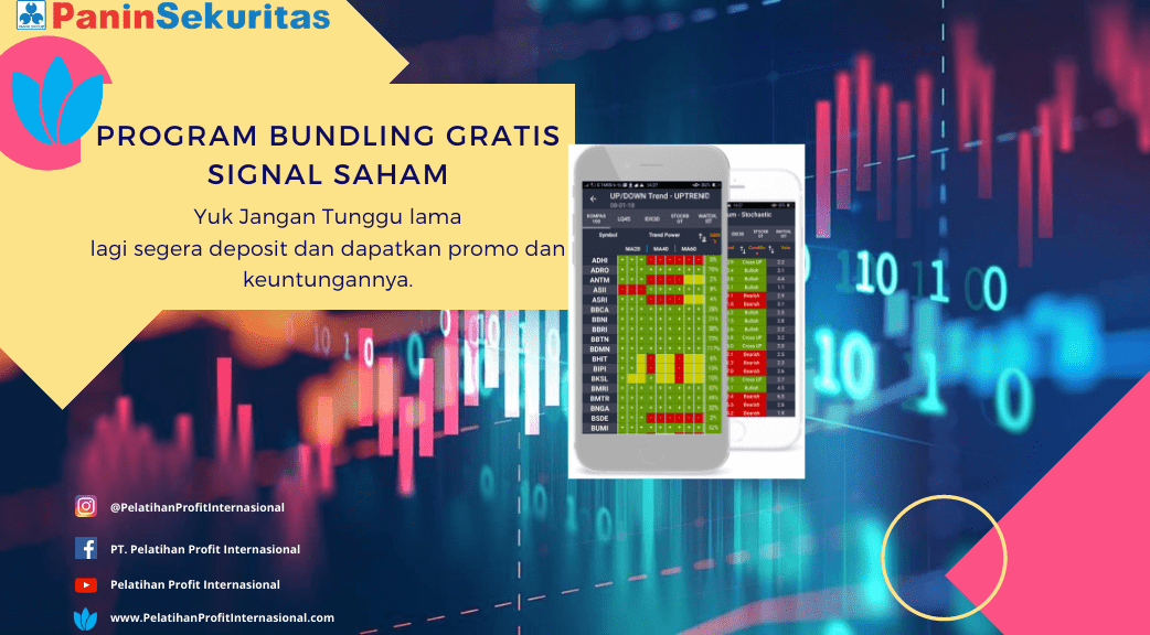 Banyak sekali bukan fasilitas yang di berikan. Anda mau mendapatkan free signal saham dengan tingkat keakurasian mencapai 70% ? Caranya sangat mudah, anda hanya perlu buka akun trading dan deposit di broker yang bekerja sama dengan PT.Pelatihan Profit Internasional. Saat ini kami PT. Pelatihan Profit Internasional bersama dengan Panin Sekuritas mengadakan PROGRAM BUNDLING yakni dimana anda akan mendapatkan keuntungan sebagai berikut :