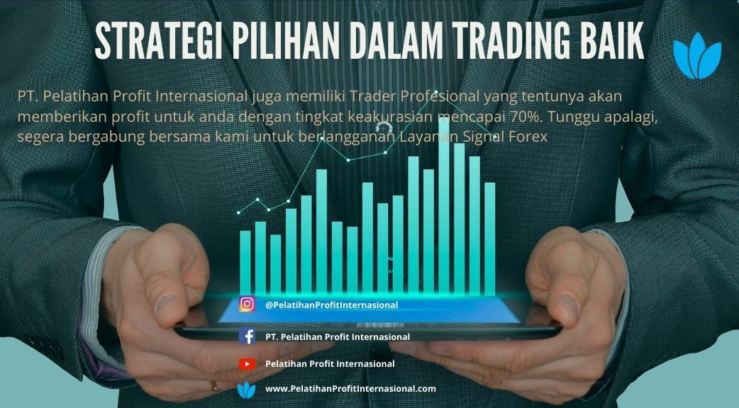 Strategi trading ini diibaratkan sebuah peta dalam kegiatan trading anda serta dapat membantu dalam mengambil keputusan bahkan dalam keadaan terdesak agar anda tetap menjaga disiplin yang tinggi. Kedisiplinan dalam trading merupakan sebuah kunci utama untuk keberhasilan anda dalam menjalankan trading anda. Strategi yang sering digunakan oleh banyak trader professional pun dapat anda jadikan referensi saat anda trading, atau jika anda masih belum memahami secara pasti tentang Analisa Teknikal, tidak ada salahnya jika anda mau menggunakan penyedia Layanan Signal trading. Kami PT. Pelatihan Profit Internasional dapat membantu anda dalam memberikan Layanan Signal Forex dengan hasil yang konsisten. Bukan itu saja, PT. Pelatihan Profit Internasional juga memiliki Trader Profesional yang tentunya akan memberikan profit untuk anda dengan tingkat keakurasian mencapai 70%. Tunggu apalagi, segera bergabung bersama kami untuk berlangganan Layanan Signal Forex dari PT. Pelatihan Profit Internasional. Harga normal untuk berlangganan Layanan Signal Forex $59 Per Bulan Free Konsultasi, Request Pair dan TimeFrame jika sudah berlangganan.