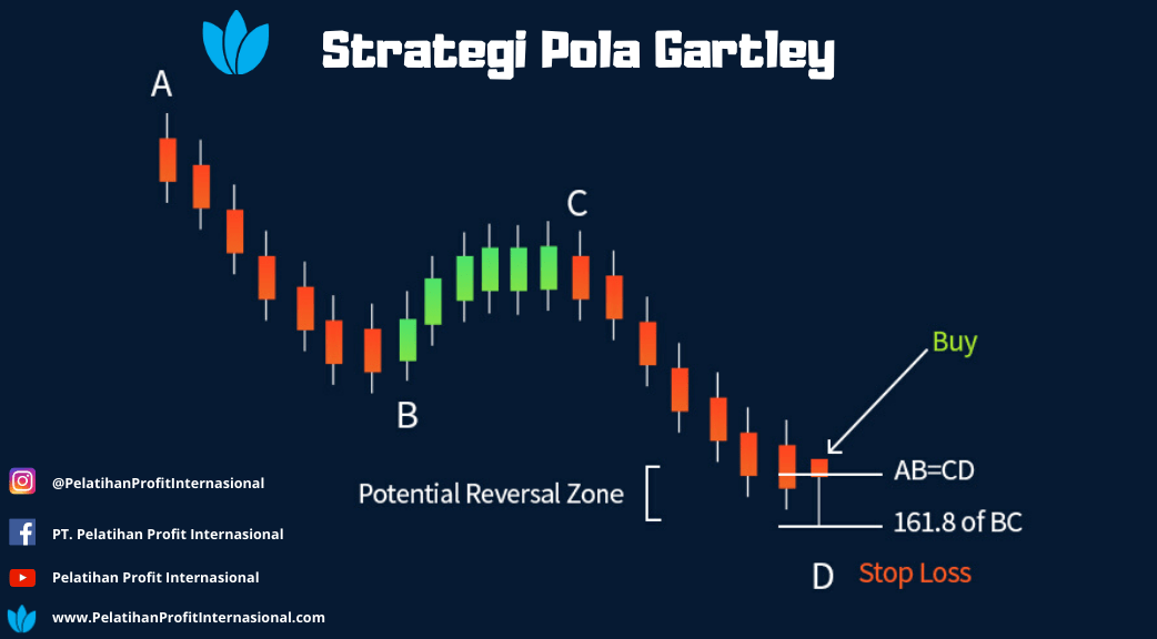 Strategi Gartley adalah variasi dari retracement Fibonacci yang biasanya digunakan untuk menentukan level entry dan exit. Lalu metode ini dirumuskan oleh seorang trader bernama Gartley. Pola ini mengisyaratkan terjadinya pergerakan harga yang bullish atau bearish dan disebut dengan Bullish Gartley serta Bearish Gartley. Ini adalah analisa teknikal yang cukup terkenal pada tahun 1930an dimana ada seorang trader yang menciptakan metode untuk perdagangan yang masih berlaku sampai sekarang. Pola Gartley terbentuk ketika harga berada dalam uptrend atau downtrend namun telah mulai terlihat ada tanda-tanda akan terjadi koreksi. Justru yang menarik adalah bahwa ketika terjadi titik balik, maka titik-titik reversal tersebut merupakan level-level Fibonacci.