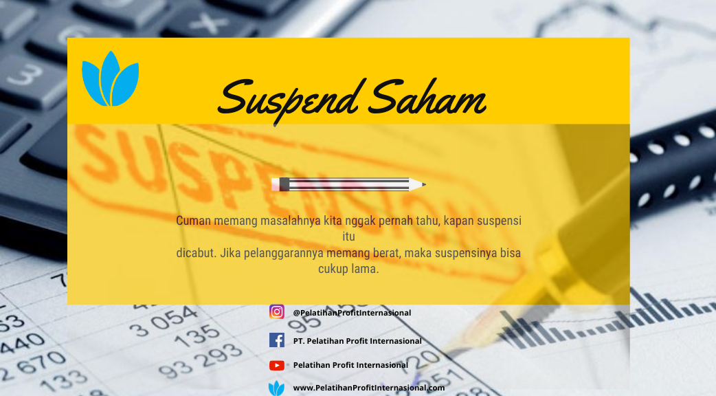 Mungkin jika kita sering membaca tentang bursa saham pernah mendengar saham di Suspensi apa sih maksudnya? Suspensi saham adalah saham yang dihentikan sementara perdagangannya oleh otoritas Bursa Efek Indonesia (BEI) dalam kurun waktu tertentu Suspensi sebenarnya bentuk hukuman/sanksi BEI nomor 4 kepada emiten yang menjadi anggota bursa
