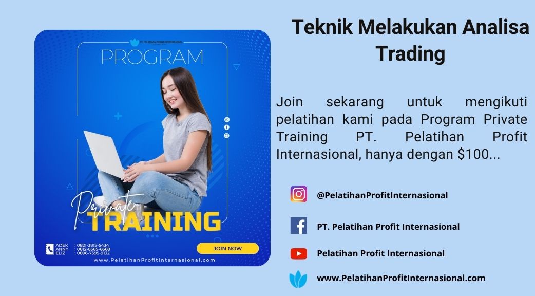 Trader pemula khususnya, seringkali kebingungan mengenai langkah-langkah dalam melakukan analisa teknikal karena tidak memahami konsep dasarnya. Dan kebanyakan trader pemula cenderung terpesona pada strategi trading yang sering dianggap canggih, padahal analisa secara teknikal dianggap memiliki tools yang lebih banyak jika dibandingkan dengan analisa fundamental. Untuk melakukan itu semua, anda diharuskan untuk terus berlatih, tetap fokus dan yang terpenting tetap rajin. Karena pasar Forex dipenuhi dengan kompetisi, tetapi bukan tidak mungkin untuk anda bisa berhasil di antara para trader profesional ketika anda menjadi seorang trader profesional sendiri. Cukup pelajari konsep dasar analisa teknikal dengan baik dan gunakan strategi yang mudah dipahami oleh anda. PT. Pelatihan Profit Internasional dapat membantu anda dalam memberikan pengetahuan dan memberikan praktek kepada peserta melalui Program Private Training di tempat dan waktu yang anda inginkan. Sebuah skill baru bisa anda kuasai dan tingkatkan jika di praktekkan dan diulang-ulang untuk semakin mengasah kemampuan anda. Join sekarang untuk mengikuti pelatihan kami pada Program Private Training PT. Pelatihan Profit Internasional, hanya dengan $100 untuk 1x pertemuan (Durasi 3 Jam). PT. Pelatihan Profit Internasional hadir dan tentunya akan memberikan pengetahuan bagi anda melalui pembelajaran di tempat dan waktu yang anda inginkan untuk kesuksesan anda. Tunggu apalagi !! Hubungi Trader Support kami :