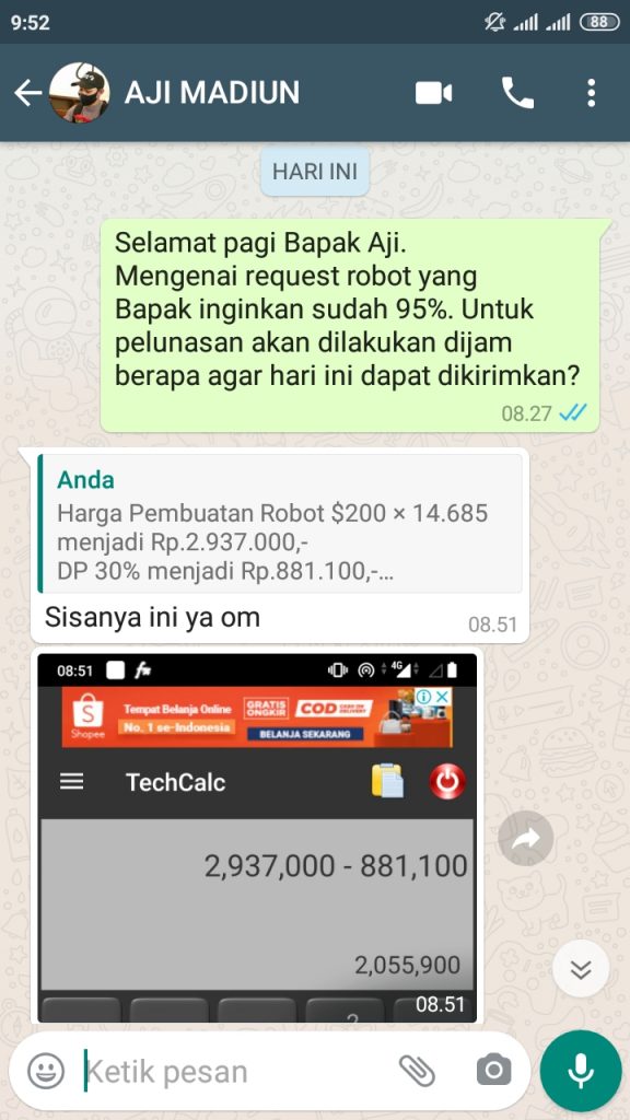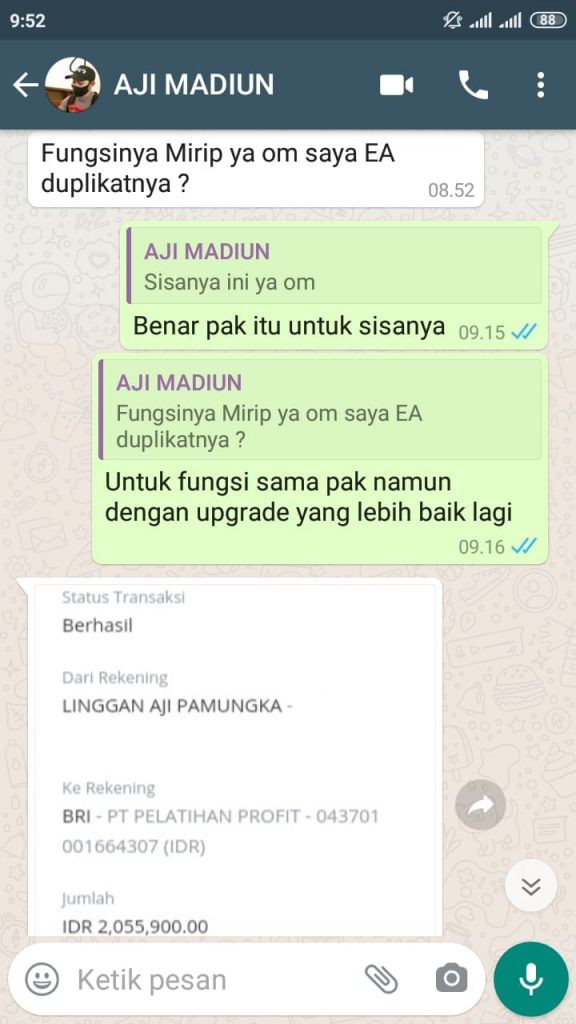 Terima Kasih Bapak Aji Dari Madiun Atas Pelunasan Pemesanan Jasa Pembuatan Ea sebesar $140 USD menjadi Rp.2.055.900,-.Semoga profit selalu amin.