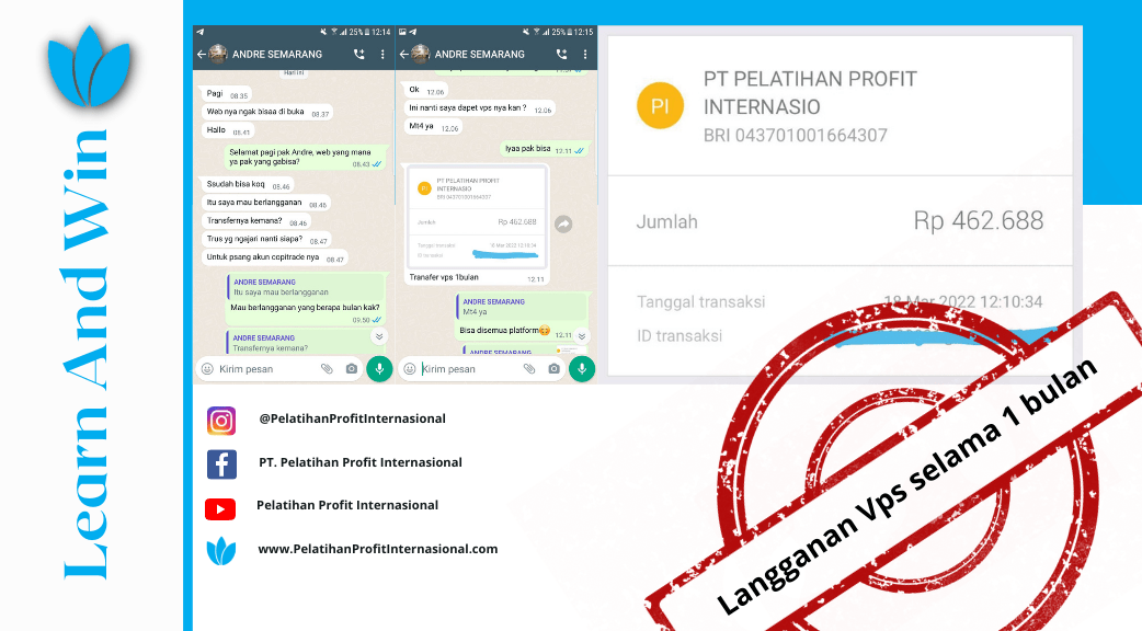 Terima kasih Bapak Andre dari Semarang atas Langganan Vps selama 1 bulan Harga Sewa Vps 1 Bulan $32 × 14.459,00 menjadi Rp. 462.688,00,-