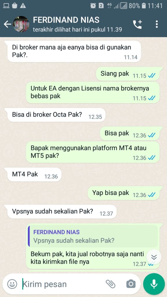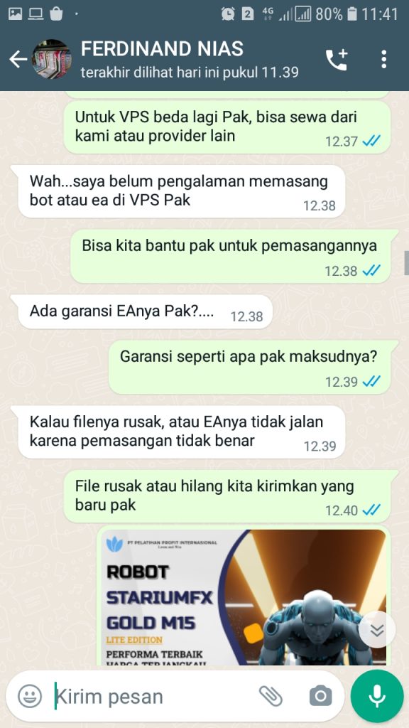 Terima Kasih Bapak Ferdinand dari Nias atas pembelian EA StariumFX Lite sebesar $240 USD x 14.439 menjadi Rp 3.465.360,- semoga profit terus menggunakan Robot Trading yang Bapak miliki saat ini.