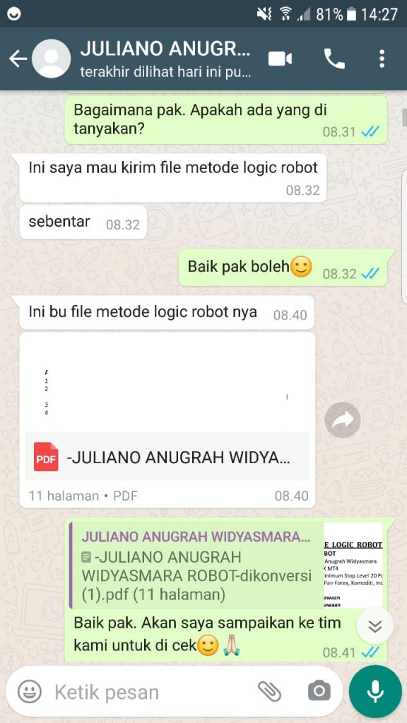 Terima Kasih Bapak Juliano Anugrah Widyasmara Dari Magetan atas Pemesanan Jasa Pembuatan EA sebesar $250 USD menjadi Rp. 3.661.250.00. Semoga profit selalu Amin.