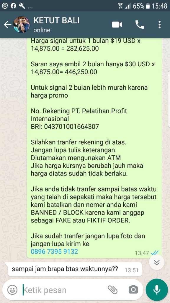 Dengan cara klik nomor Whatsapp dibawah ini, lalu ketik “CONTOH SIGNAL FOREX“