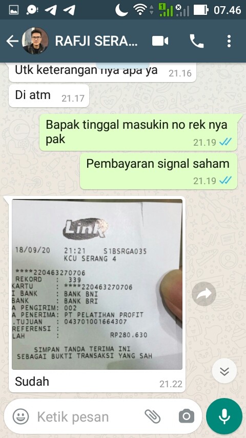 Terima Kasih Bapak M. Rafji Muharam Dari Serang Atas Langganan Signal Saham Selama 1 Bulan sebesar Rp.280.630,00 . Semoga profitnya berlipat-lipat dan berlanjut langganan Signalnya yang lebih panjang lagi. Aamiin