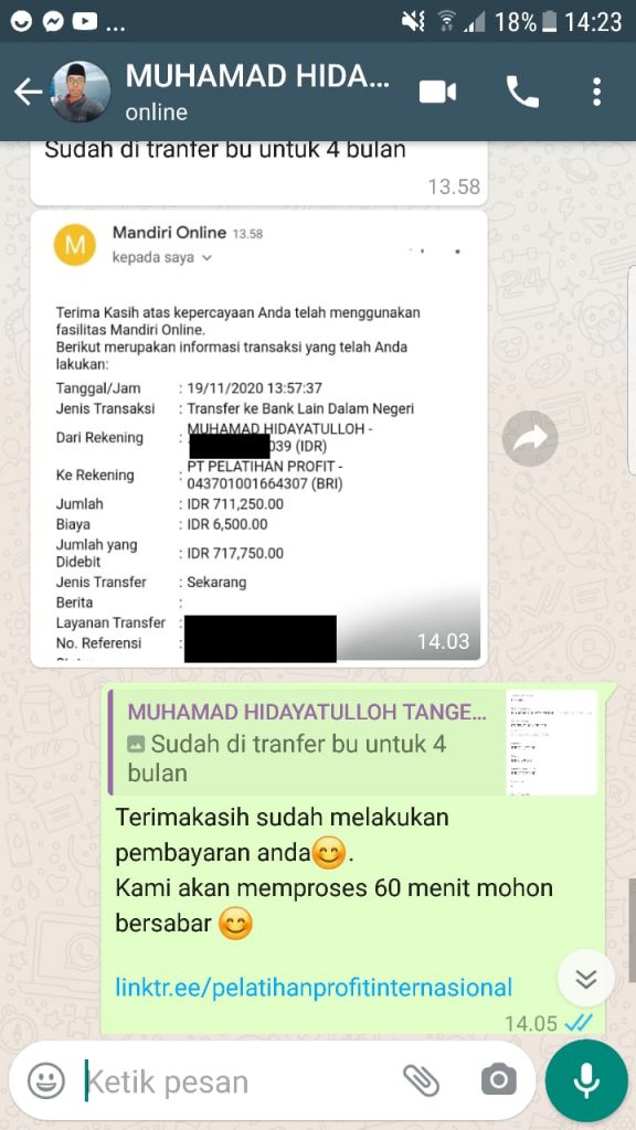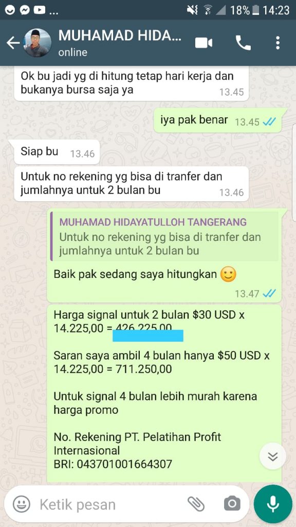Terima Kasih Bapak Muhamad Hidayatulloh Dari Tangerang Atas Langganan Signal Saham Selama 4 Bulan sebesar Rp. 711,250.00 berlaku sampai dengan 19 November 2020. Semoga profitnya berlipat-lipat dan berlanjut langganan Signalnya yang lebih panjang lagi. Aamiin.