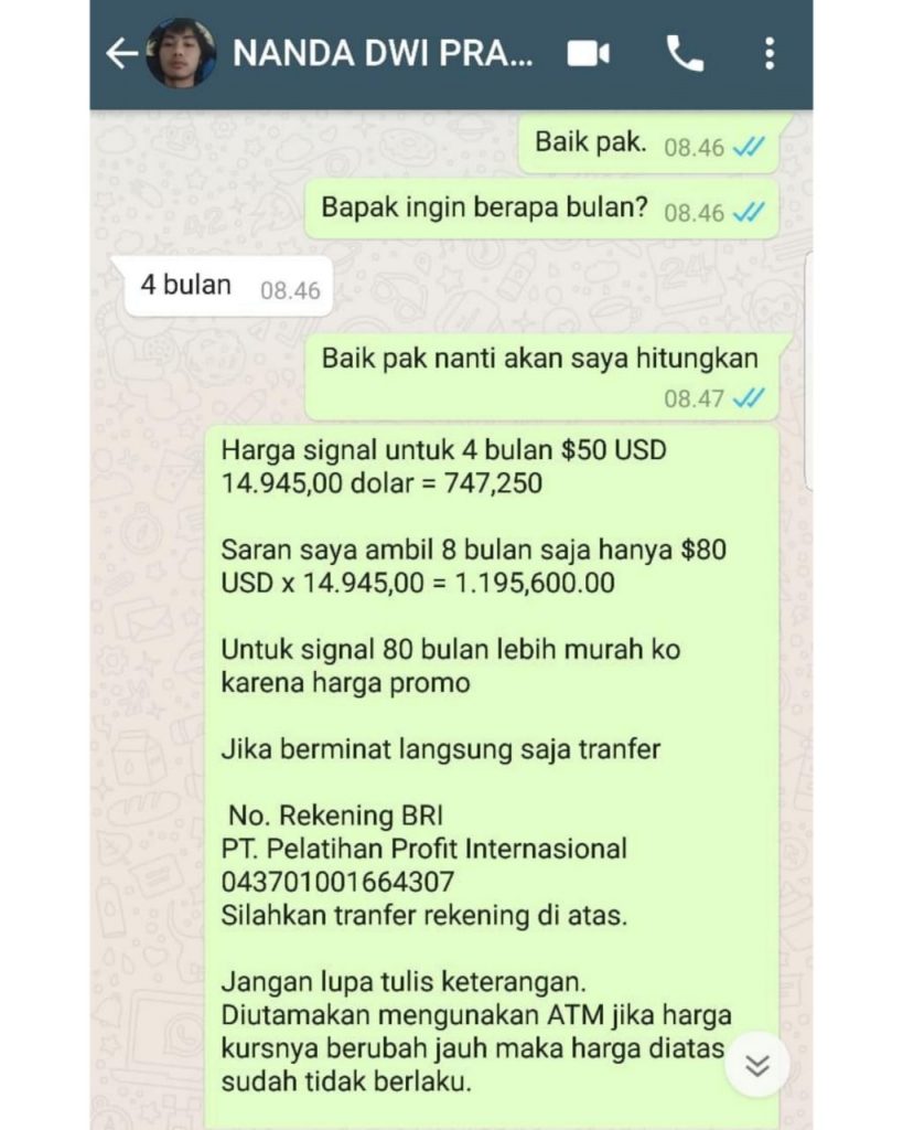 Dengan cara klik nomor Whatsapp dibawah ini, lalu ketik “CONTOH SIGNAL FOREX“