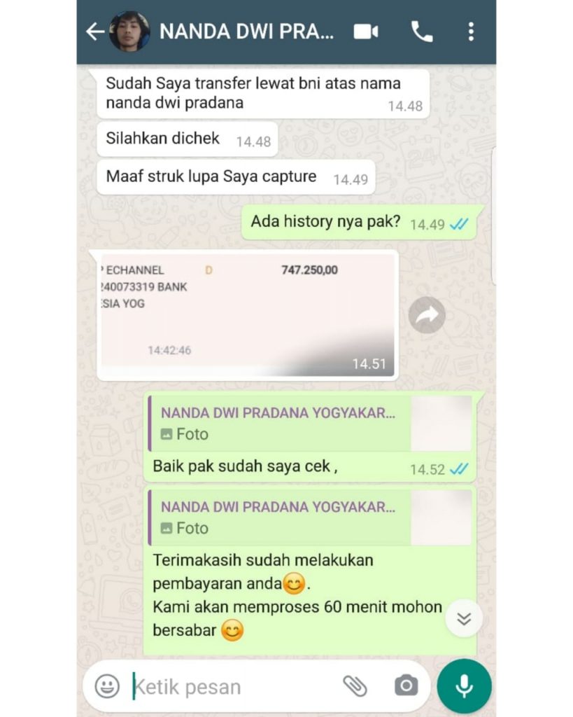 Silahkan WhatsApp untuk harga promo di bulan September 2020.