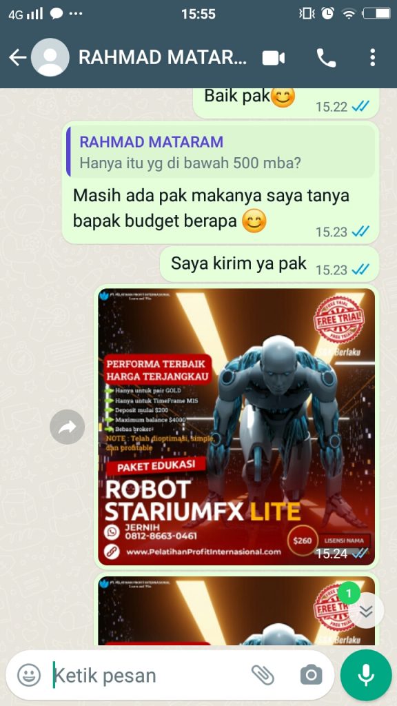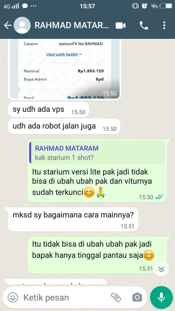 Terima kasih Bapak Rahmad Mataram atas pembelian starium lite lisensi nomor $120x 15.179,00 menjadi Rp. 1.803,120,00, Semoga Bapak profit terus menggunakan robot starium lite kami, AMIN.