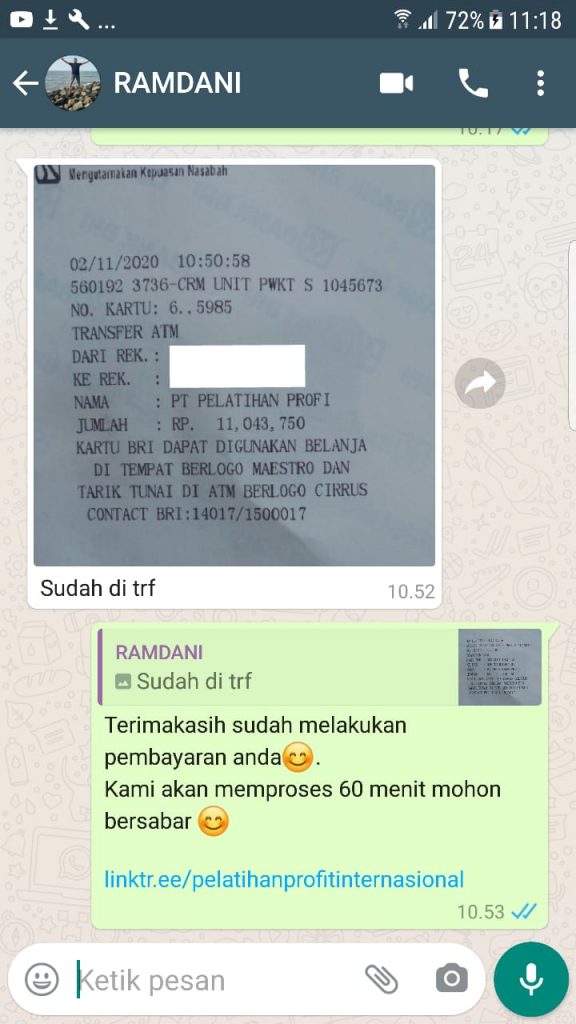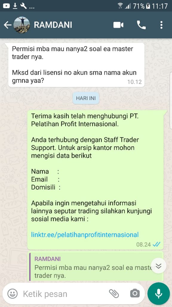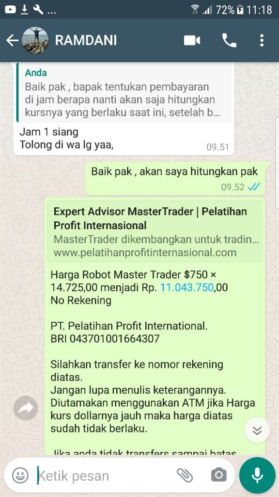 Terima Kasih Bapak Ramdani Dari Purwakarta Atas Pemesanan Ea Master Trader sebesar $750 USD menjadi Rp. 11.043.750,00 Semoga Bapak profit terus menggunakan Robot Master Trader kami, Aamiin
