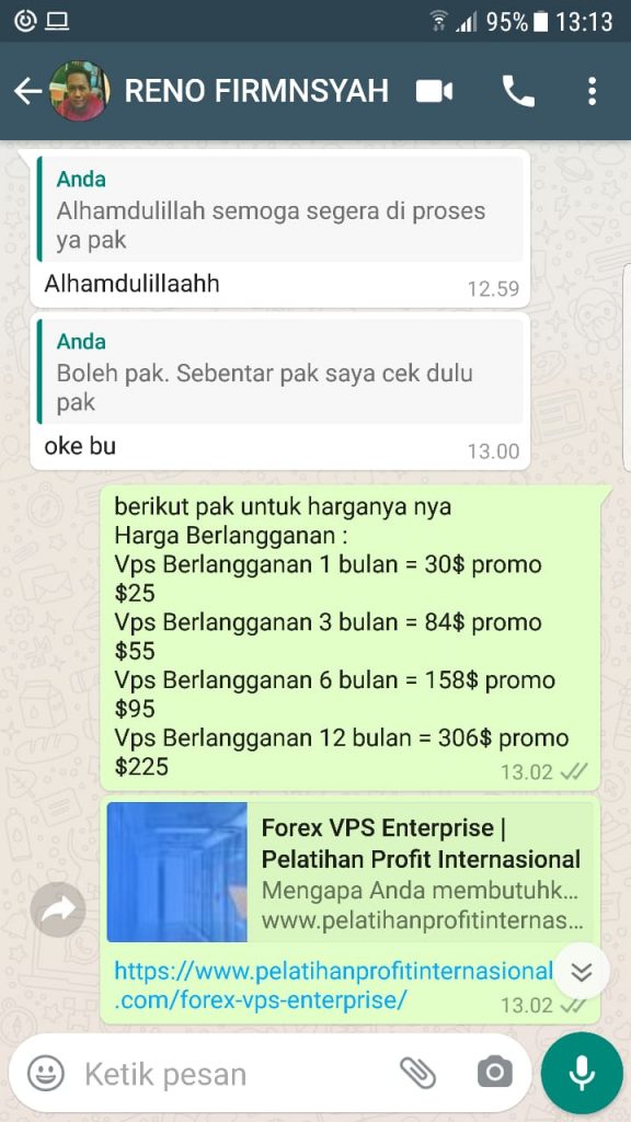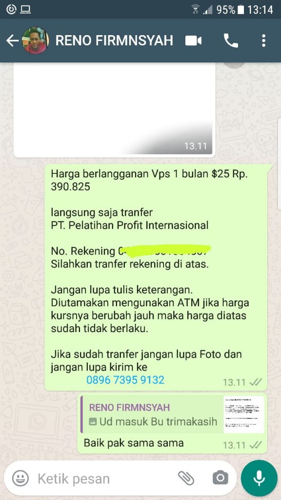 Terima kasih Bapak Reno Firmansyah dari Tanjungpanjang Belitung atas langganan VPS selama 1 bulan sebesar Rp.390.825.00 Promo hanya berlaku untuk 10 member pertama di bulan APRIL 2020 (Sisa 9 slot member lagi).