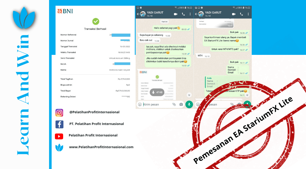 Terima Kasih Bapak Said Haryadi dari Garut atas pembelian EA StariumFX Lite sebesar $260 USD menjadi Rp 3.740.000,- semoga profit terus menggunakan Robot Trading yang Bapak miliki saat ini.