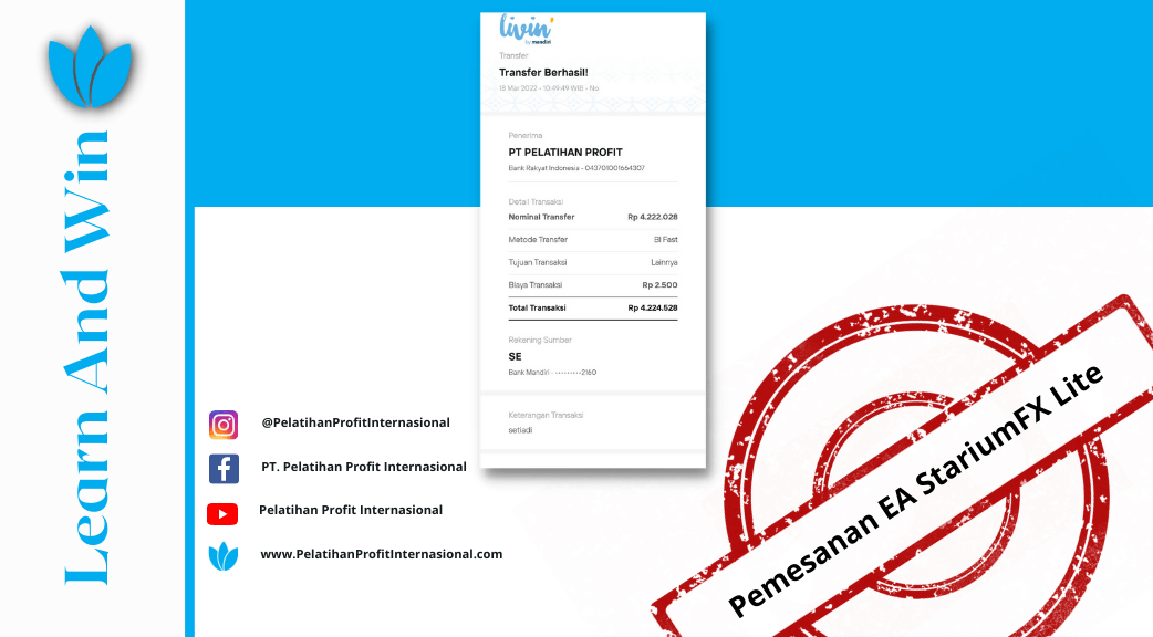 Terima Kasih Bapak Se** Iman* dari Jakarta atas pembelian EA StariumFX Lite sebesar $260 USD menjadi *Rp 3.759.340,- dan VPS RDP 1 bulan sebesar Rp.462.688,- semoga profit terus menggunakan Robot Trading yang Bapak miliki saat ini.