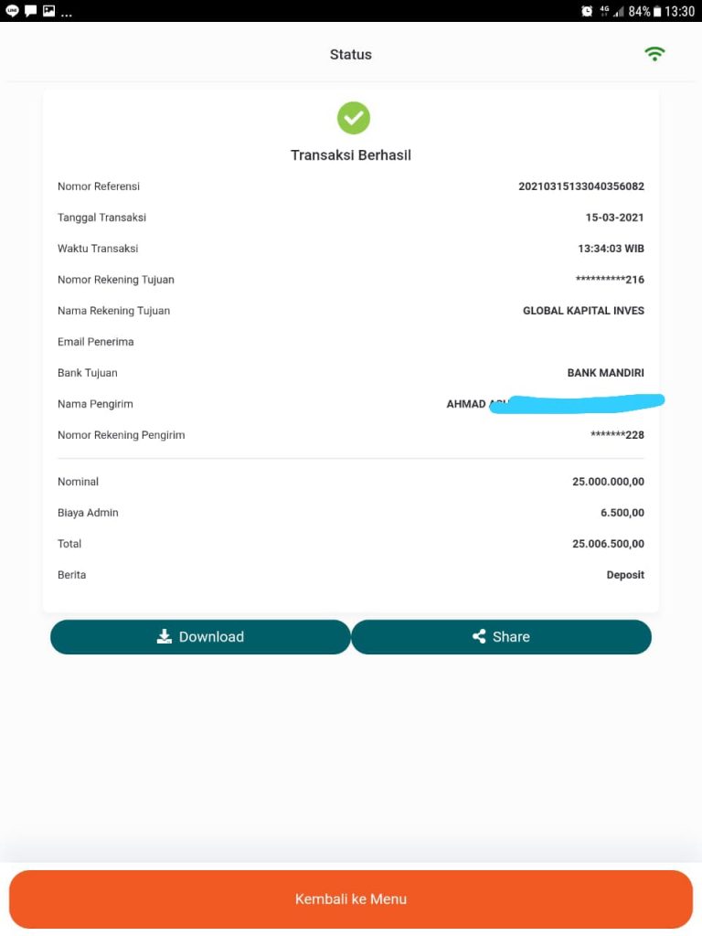 Terima Kasih Bapak Sidik Dari Semarang Telah Mengikuti Program Buka Akun Sebesar $2500 atau sebesar Rp.25.000.000 pada GK Invest.