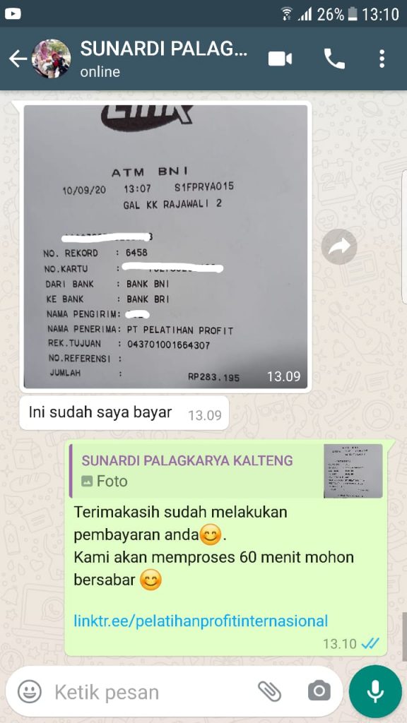 Terima Kasih Bapak Sunardi Dari Palangkaraya Kalteng Atas Langganan Signal Forex Selama 1 Bulan sebesar Rp.283.195,00- berlaku sampai dengan 10 Oktober 2020. Semoga profit nya terus berlanjut dan berlipat lipat ya. Supaya bisa langganan Signal yang lebih panjang lagi. Aamiin