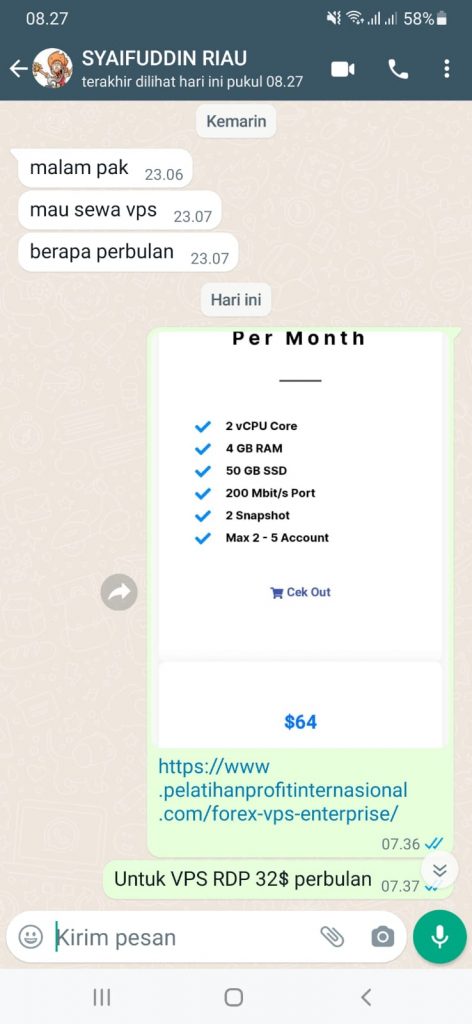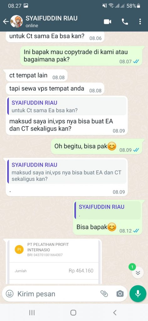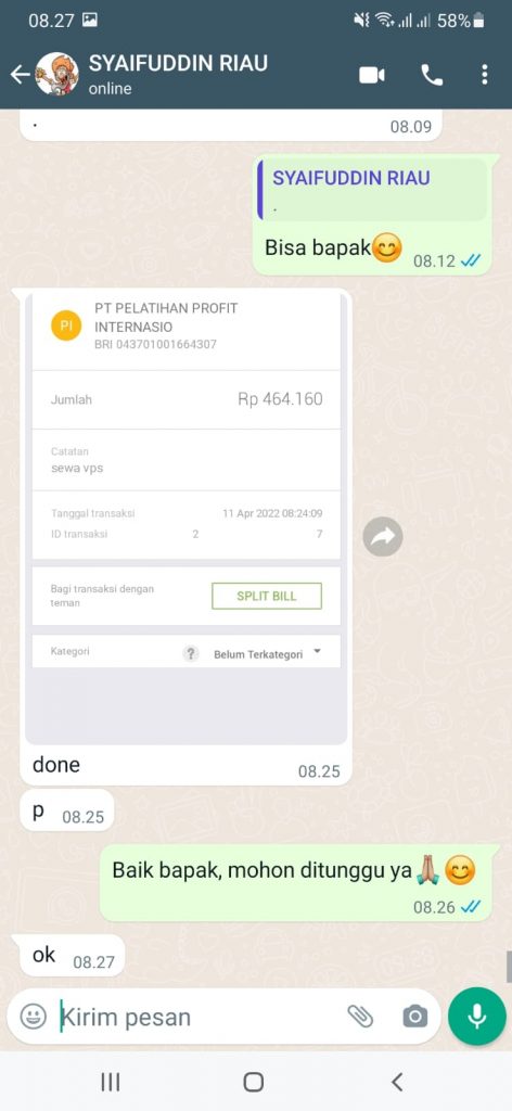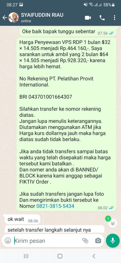 Terima kasih Bapak Syaifuddin dari Riau atas penyewaan VPS RDP sebesar $32 USD menjadi Rp.464.160,- hingga 11 Mei 2022. Semoga Bapak profit terus, AMIN.